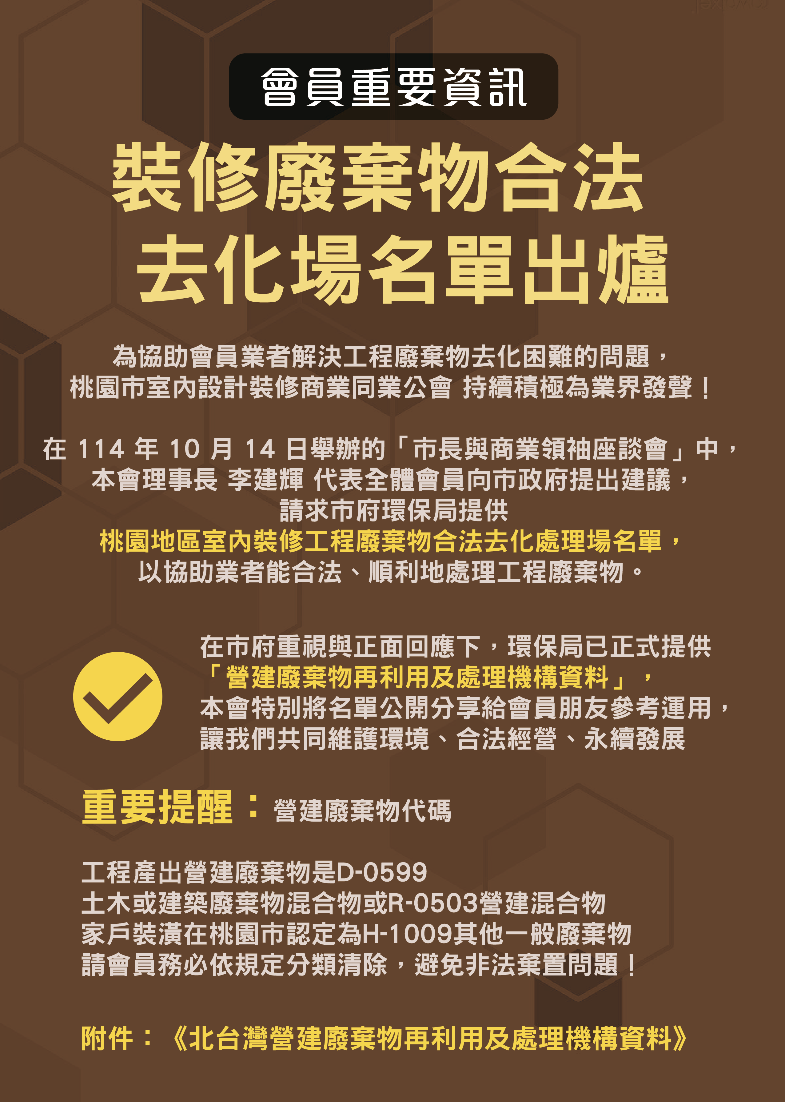 會員重要資訊|裝修廢棄物合法去化場名單出爐