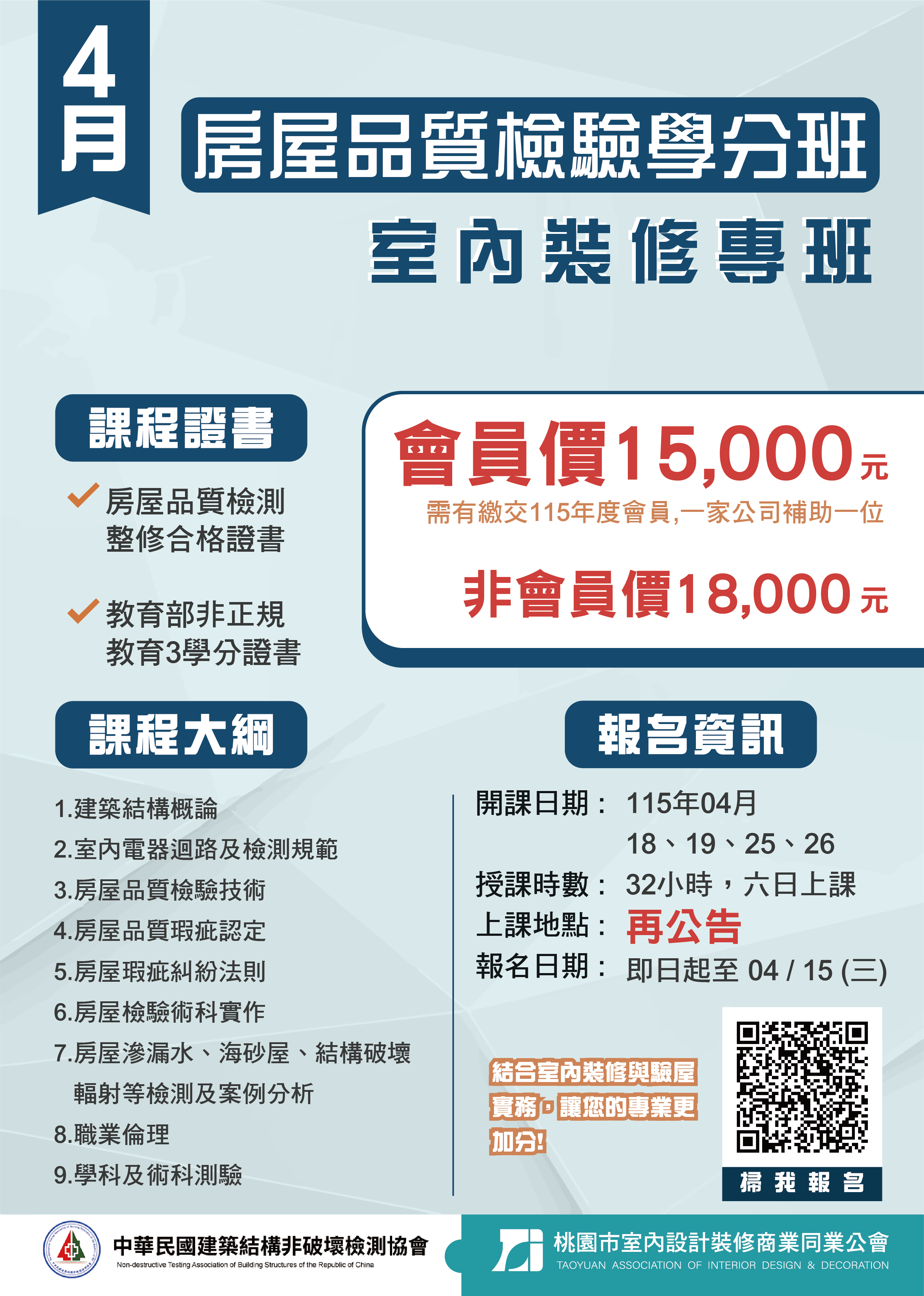【房屋品質檢驗暨室內裝修專班|4月開課】