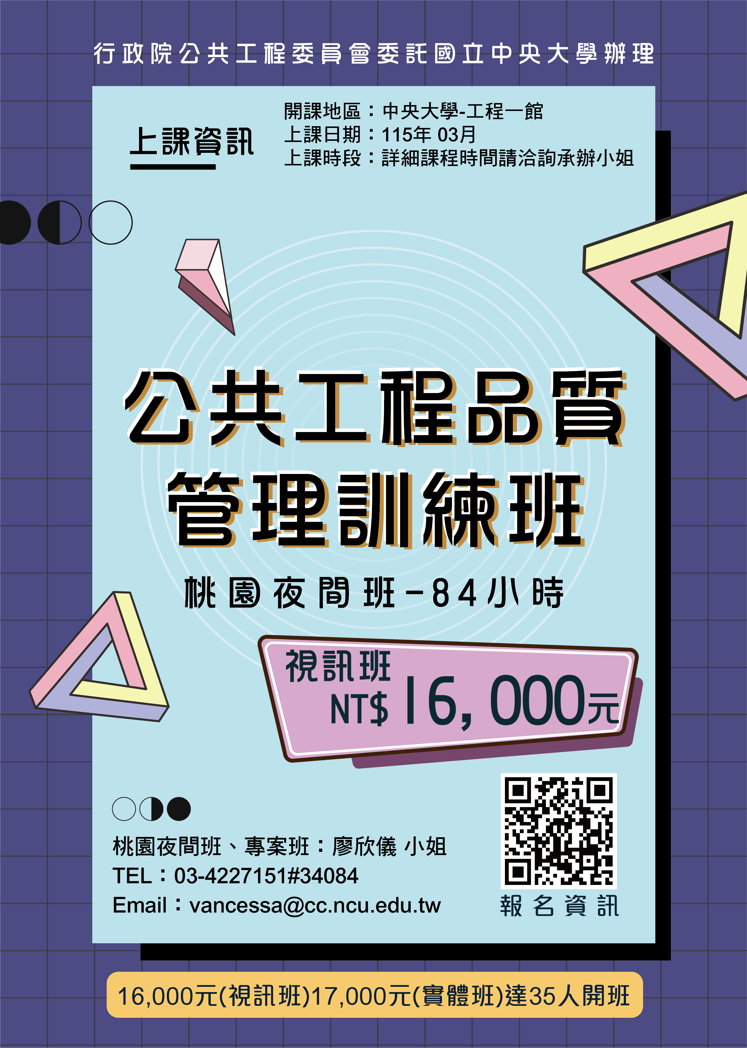 辦公室位置:中央大學 工程一館 土木材料品保中心 教育訓練組
