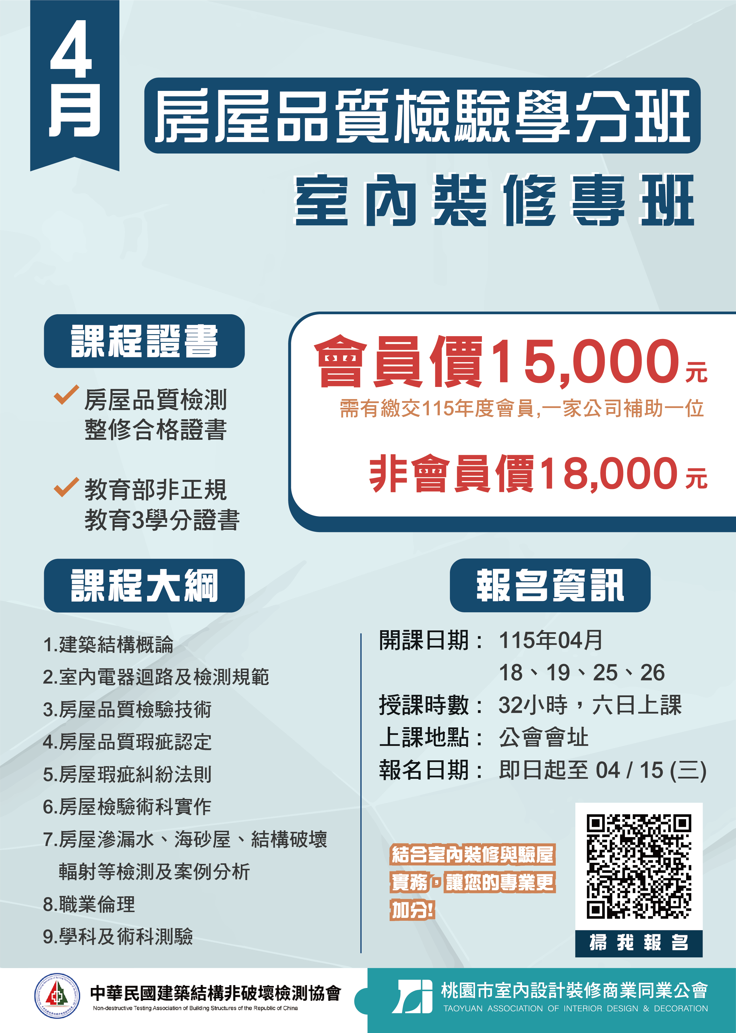【房屋品質檢驗暨室內裝修專班|4月開課】